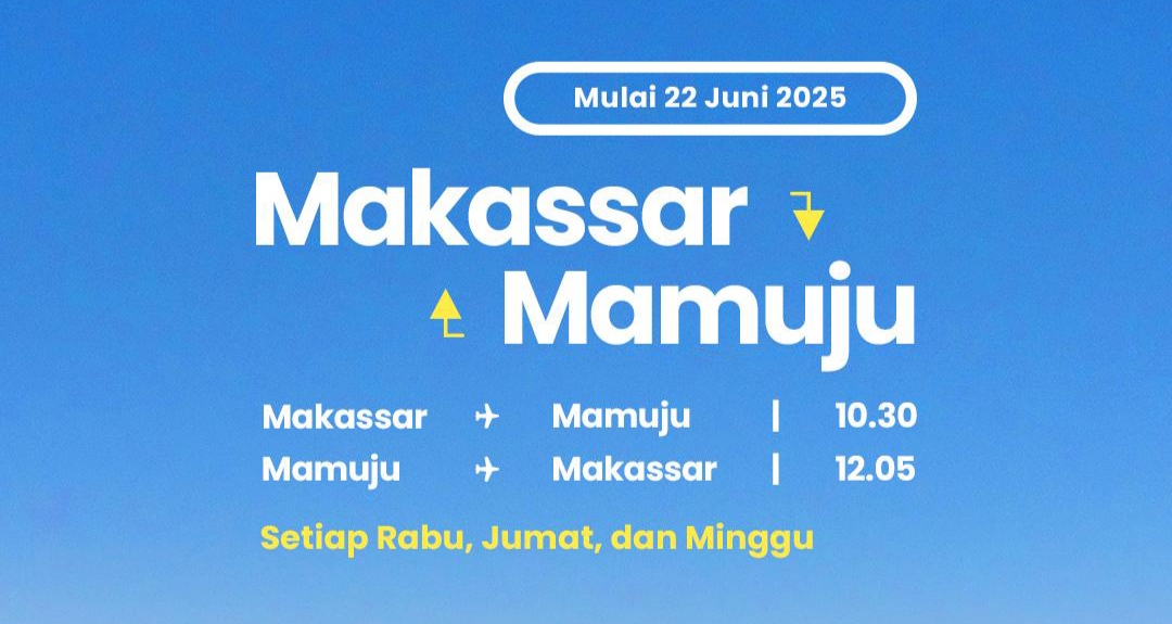 Penerbangan rute ini akan beroperasi rutin tiga kali dalam sepekan mulai 22 Juni 2025, sebagai bentuk dukungan terhadap konektivitas dan pertumbuhan wilayah di Indonesia bagian timur.