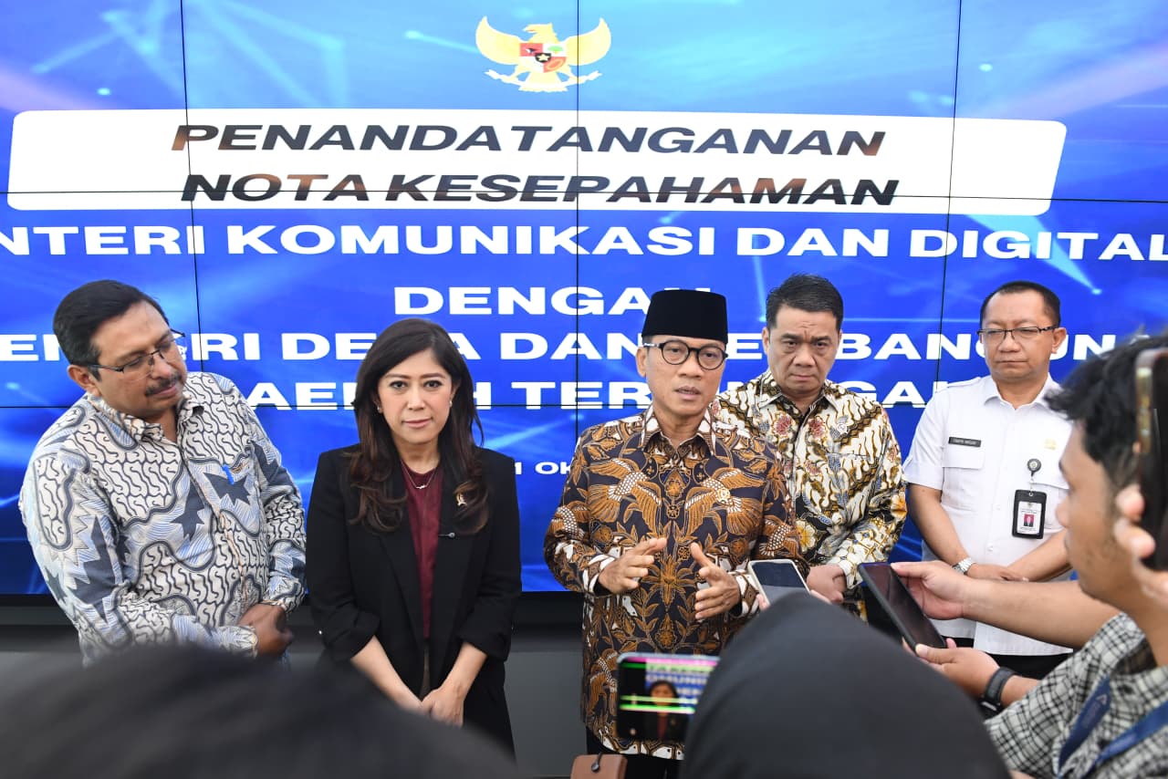 Hal tersebut tertuang dalam Nota Kesepahaman tentang Sinergitas Pemanfaatan Teknologi Komunikasi dan Digital untuk Pembangunan Desa dan Daerah Tertinggal yang ditandatangani dua kementerian ini pada Selasa (21/10/2025).