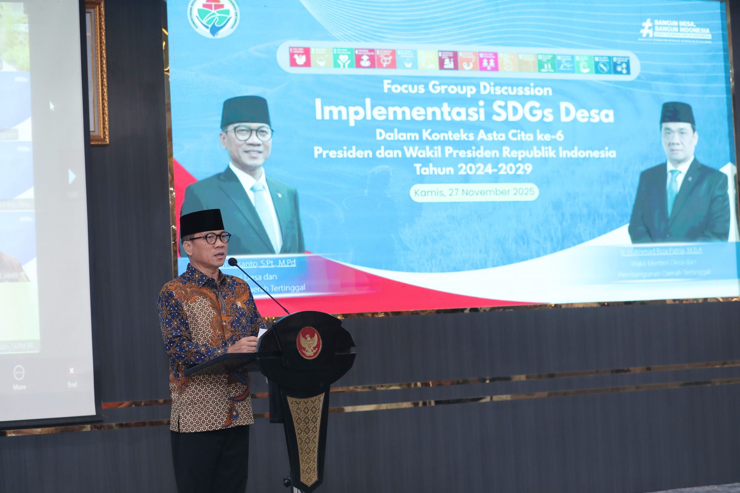 Pernyataan tersebut disampaikan saat membuka Focus Group Discussion (FGD) bertajuk Implementasi SDGs Desa dalam Konteks Asta Cita ke-6 Presiden, di Kantor Kemendes PDT, Kamis (27/11/2025).