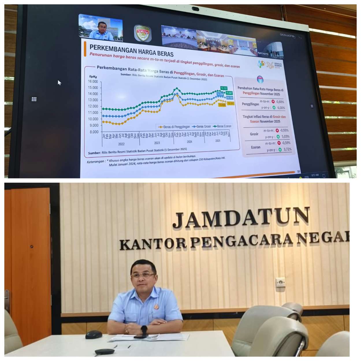 Di antara narasumber utama, Koordinator I pada Jaksa Agung Muda Bidang Perdata dan Tata Usaha Negara (Jamdatun) Kejaksaan Agung RI), H. Ferry Taslim, S.H., M.Hum., M.Si., Dt. Toembidjo, tengah menyampaikan paparannya secara virtual langsung dari Ruang Kerja Jamdatun Kejaksaan Agung RI, setelah secara resmi ditugaskan mewakili Jaksa Agung Republik Indonesia dalam forum koordinasi nasional tersebut.