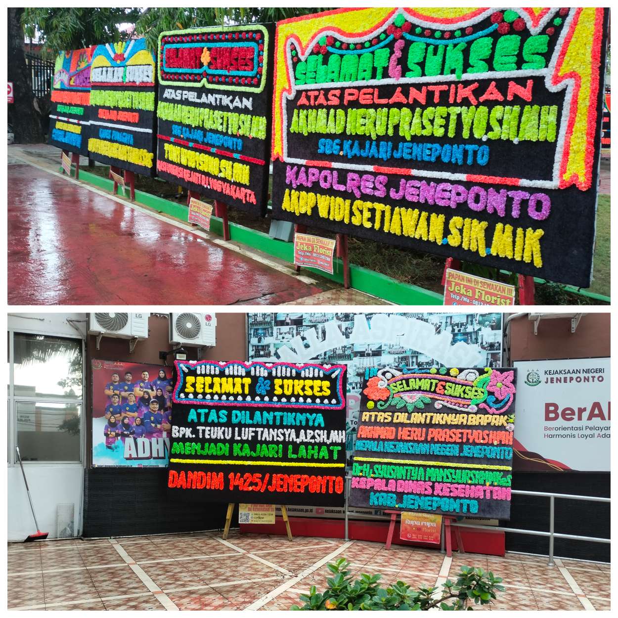 Pelataran Kejari Jeneponto Dibanjiri Karangan Bunga Sambut Kajari Akhmad Heru Prasetyo