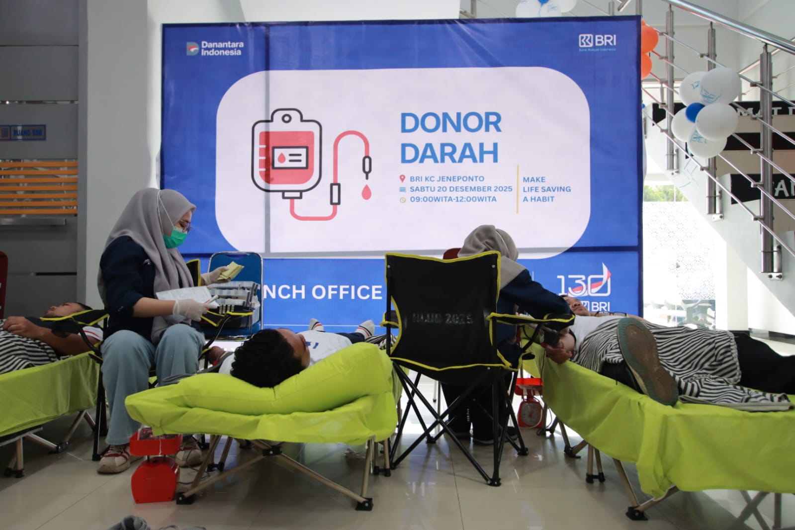 RAKYAT NEWS, JENEPONTO – Bank Rakyat Indonesia (BRI) Cabang Jeneponto menggelar kegiatan Bakti Sosial dalam bentuk donor darah untuk memperingati Hari Ulang Tahun (HUT) BRI yang ke-130 pada tahun 2025. Kegiatan tersebut berlangsung di Kantor Cabang BRI Jeneponto pada hari Sabtu, 20 Desember 2025.