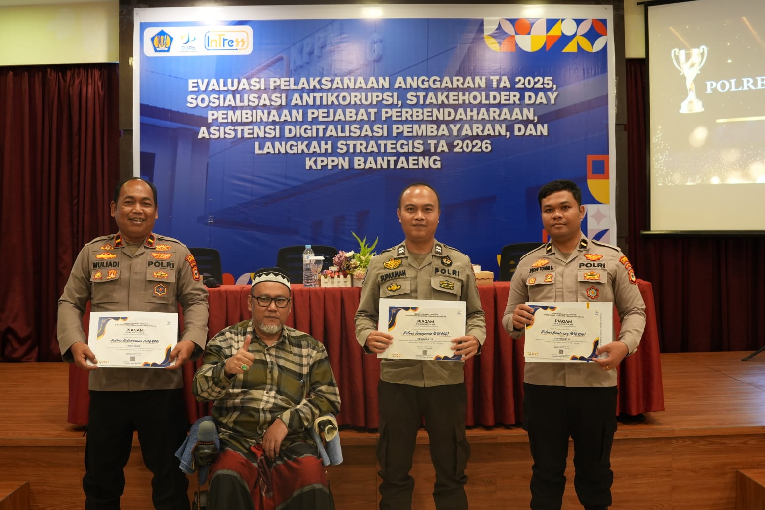 RAKYAT NEWS, JENEPONTO – Dalam forum evaluasi dan koordinasi yang digelar oleh Kantor Pelayanan Perbendaharaan Negara (KPPN) Bantaeng, Polres Jeneponto berhasil menyabet tiga penghargaan sekaligus. Penghargaan tersebut diterima oleh Aiptu Suparman perwakilan Polres Jeneponto yang hadir dalam kegiatan bertajuk “Evaluasi Pelaksanaan Anggaran TA. 2025, Sosialisasi Anti Korupsi, Stakeholder Day, Asistensi Digitalisasi Pembayaran, dan Langkah Strategis TA 2026” di Hotel Kirei Bantaeng, Kamis (5/2/2026) lalu.