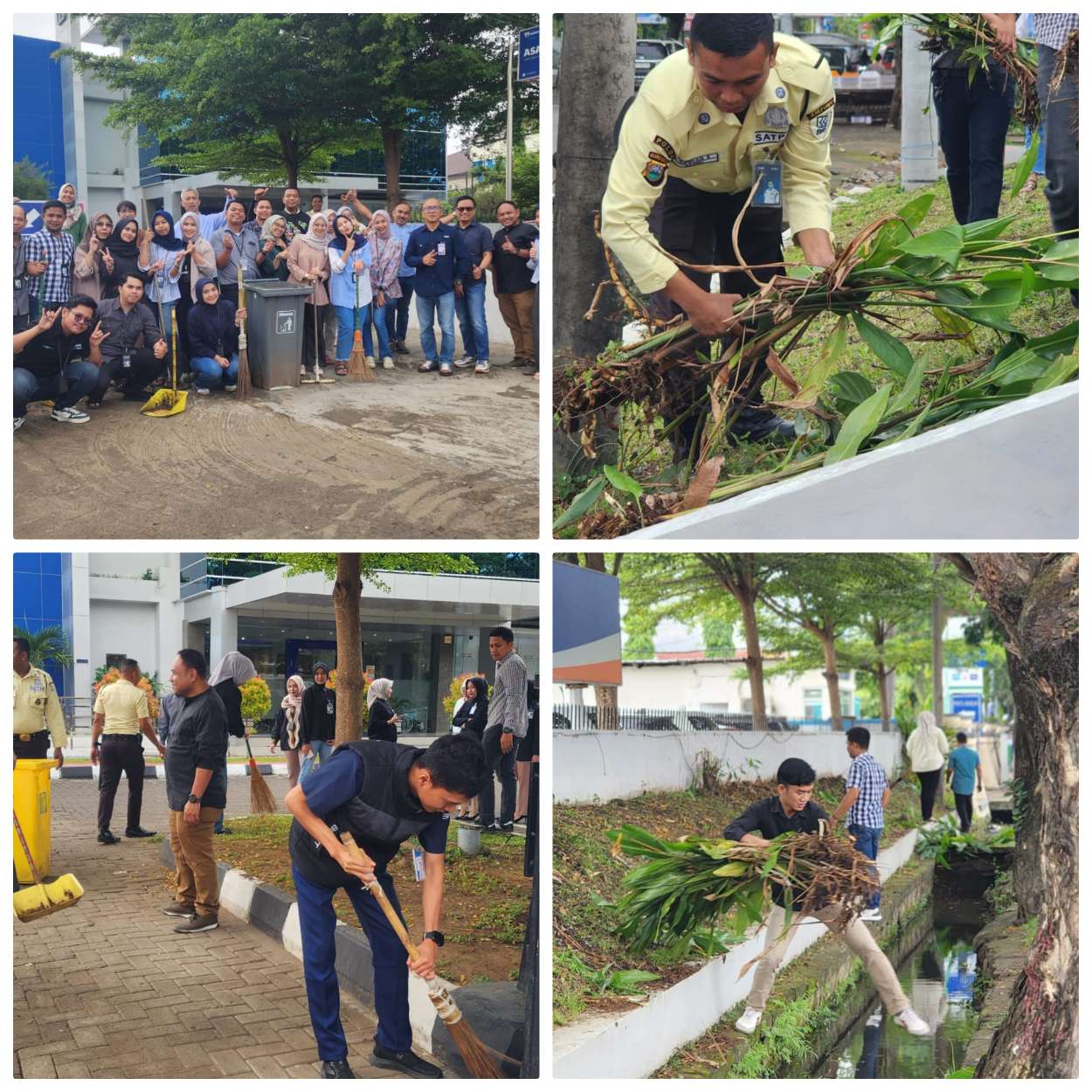 Aksi yang berlangsung meriah itu tidak hanya membersihkan ruang kerja, tetapi juga menjangkau area publik di sekitar cabang. Para peserta dengan cekatan membersihkan selokan dari sampah plastik, merapikan tanaman, dan memburu sarang nyamuk untuk mencegah penyakit demam berdarah. Antusiasme terpancar jelas, mengubah hari kerja biasa menjadi momentum kebersamaan yang positif.