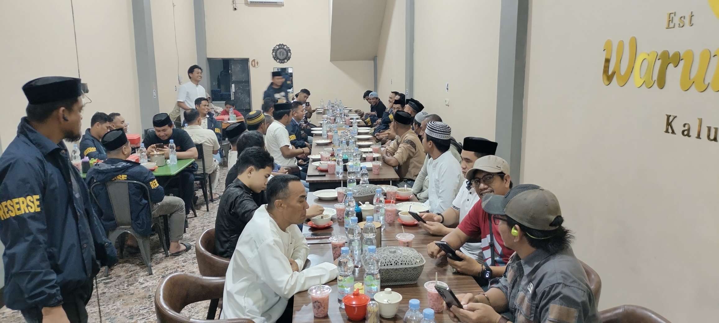 Acara berlangsung santai penuh tawa, diisi dengan dialog ringan seputar dinamika pemberitaan, tantangan kerja lapangan, serta saling berbagi cerita. Menu buka puasa khas Warung Nur Kalukuang pun turut menambah kehangatan suasana kebersamaan.