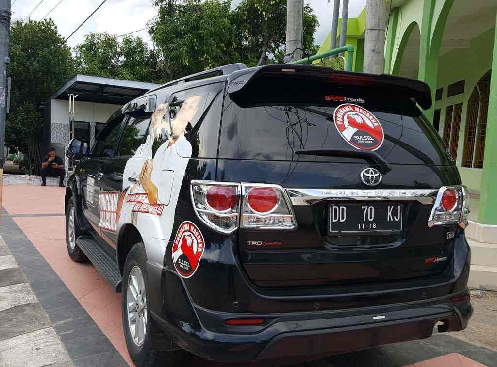 Tak hanya itu, kendaraan pribadinya juga sudah dibranding full dengan memuat gambar IYL-Cakka lengkap dengan tagline pasangan tersebut “Bersama Membangun Sulsel” dan Punggawa Macakka.